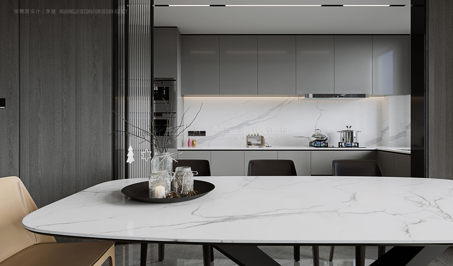 主要建材:巖板、木飾面墻板、金屬、硬包、藝術漆等